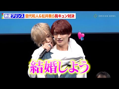 ドラマフィル『熱愛プリンス』完1話先行上映&トークイベントが開催され、W主演の杢代和人(原因は自分にある。)と松井奏(IMP.)、ヒロインの林芽亜里、そのほか共演の大倉空人・小泉光咲(原因は自分にある。)、増子敦貴(GENIC)、大東立樹(CLASS SEVEN)、芳賀柊斗(Lienel)が登壇した。