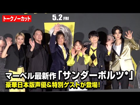 ROAD TO THE AVENGERS!「サンダーボルツ*」前夜祭イベントが1日、都内で行われ声優の田村睦心、白石充、梶裕貴、そしてゲストとしてJO1・佐藤景瑚、加藤浩次、秋元才加らが登壇した。