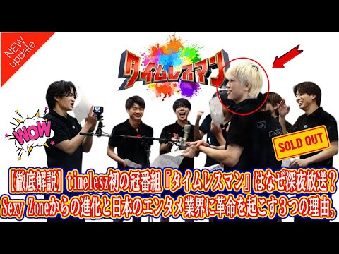 【Timelesz】【徹底解説】timelesz初の冠番組『タイムレスマン』はなぜ深夜放送?Sexy Zoneからの進化と日本のエンタメ業界に革命を起こす3つの理由。