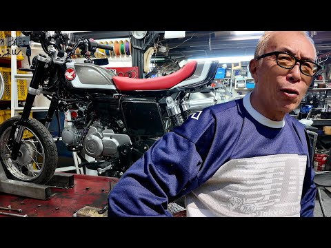 へえ。どこがノーマルなの?これ。 いやいや、ほぼノーマルですよ。 タンクは違うんでしょ? タンクあとCとも違うんでしょ? ハンドル同じ。 あ、そうなの? ハンドル一緒。 いや、今のモンキハンドルなの?今。 そう。それでここになんかごちゃごちゃしてたのここに埋め込んの? ねえねえ。 モンキーってさ、小さいの売りでしょ。 確かに今までのモンキーは小さいのが売り。 もう振り切っちゃいます。 前ブレーキいりません。そしてタイヤを でかくする。タイヤをでかくするっ てことはホイールベースもちょっと長くし ないと そしてドリフトします。そんなバイクを 作ろうかなと思ってます。ちょっとね、 手探りなんでアドバイスをいただきながら もね、完成に近づけていけたらなと思って ます。よろしくお願いいたします。 はい。え、で、ホイール外しました。よいしょ。で、次に 14in行きます。です。 はい。問題はチンラインなんですけどね。 そうですね。ここですよね。多分この うん。うん。植えるこのラインです。 うん。うん。ざっと見ですけど。こんぐらいか。もうちょいか。 結構だくな。 両側は結構きます。 ちょっとね、横ツは結構かっこよかったんですけど、あの、真裏からね、見ると確かにチェーンラインを合わせるとこんだけスペースが開くの。 本当は優勢株ぐらいの細いホイールの方が クイックにあのハンドル操作もできるんだ けど海外にはね14inでもうちょっと 太いホイールもあるんで それを吐き換るかちょっと皆さん意見 ください。 あ、いいっすね。うん。うん。こんな感じ 。 14inはい。 で、え、フロントブレーキいらないですもんね。 いらない。 うん。 で、ちょっと鳴らしが終わるまでは後ろのこのあのナンバ、ナンバのやつもちょっと残してもらって。 うん。はい。あ、なんかね、あの、いいとこ取りしようと思ったんです。行動でも乗れてフラットラックできてなんて思ったのが大間違い。 もうレースシーンで使いたい 125 のモンキーでフラットラックするにはもうね、保安部品外しちゃいます。 それでもとなればスイングアム作りますか?伸ばしちゃいますか?もっとかっこいいやつ。 そしたら予算が全然ね。 いやいやいやいや。そこはね気持ちで心きですよ。 す、それ言っちゃってます。あのね、知り合いのこのバイク屋さんでもね、ちょっとね、ゆちゃんとできるところまでやろうかって言ってくれたんですけども、今のミニバイク結構ね、色々進化してます。パーツも海外で結構ね、アジア内で色々パーツも作ってる。 そこら辺も結構詳しくないと精通してない とこのね、モンキーは作れないと。そう僕 がね、ま、判断をしました。やっぱミニ バイクはね、 [音楽] 幻のショップ メールでね、最初やり取りをして、まあ1 ヶ月後ぐらいかな、2週間後ぐらいかな、 返事が来て やりましょうと言いました。そこに 持ち込みます。 立っての 安倍さんの写真士なんぞやと山口の実業家のひさんとこにお邪魔しました。なぜかって言うと世谷ベース大好きなんです。ゆうちゃんのことも応援してくれてる幻のショップのお客さんなんです。もう 10 代の頃からちょくちょく通ってたということを聞きました。それのインタビューです。 僕が若い時にまだ16 ぐらい行った時はやんちゃなバイク乗ってたんですよ。 ただもうや追い返されて来るなって言ってもうそれでもその当時今の CB7半とか うんうんうんうん いっぱいゴロゴロあったんでですねと思ってバイクを結構ノーマルに戻しながら見に行ったりマハの 500とかもうすごいアイフ 古いバイクを結構やってたんですよ、最初。で、もうあまりにも好きすぎて、で、もう本当に Z1 を作ってもらったんですよ、僕。あそこで。 あ、そう。 はいはいはいはい。で、それから今度は ハーレーに変わってで [音楽] もう今はもう売ってしまったですけどね。 たいな。もあん時ショベルの前期ぐらいの はい、その伝説のバイク屋さんなんですよ 。それはまた明日。また明日じゃないや。 ごめんなさい。また自習ということでね、 よろしくお願いいたします。さ、ま、その 伝説のバイクさんもそう、そしてひさんも 太っぱらなんですよ。俺ね、ホテルに 泊まれるかと思ったらこのキャンピング カー1晩止まらせていただきました。 [音楽] ありがとうございます。もうね、色々 ちょくちょく山口にも行きますんで、 どうぞよろしくお願いいたします。バイク もね、どんどん進化していきそうです。 間違いないでしょ。 [音楽]