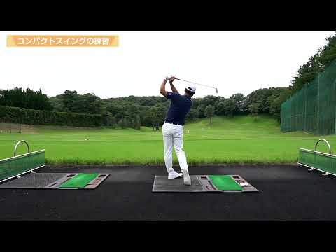 コンパクトスイングの実際のトップはイメージよりも少し高くなりますが、振り幅を抑えるイメージを持つことでミート率がアップし、距離感も方向性も安定しやすくなります。