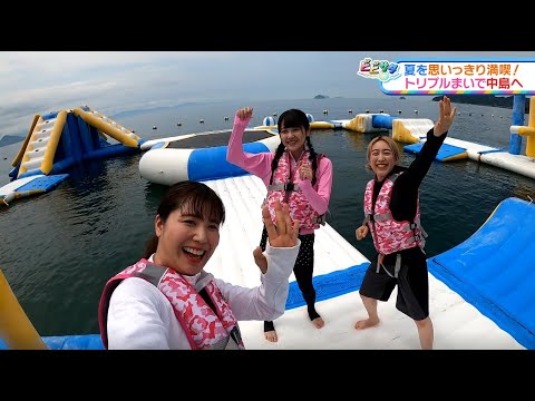 今回のビビサタは拡大放送!特集はトリプルまいが中島へ海遊び!大人気の海上アスレチックでおおはしゃぎ!SUPで島をゆったりクルージングしたり、新鮮なアワビやサザエの豪華海鮮バーベキューを堪能するなど、中島の夏をおもいっきり満喫!その他にも、かわいいペットを紹介する“ぺとらば”や生活に役立つ情報盛りだくさんでお届け!
