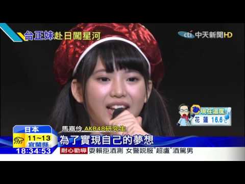 AKB48 2015-12-16 20151216中天新聞 初登場!首位台籍成員 馬嘉伶加入AKB48 在今年四月AKB台灣成員徵選活動,兩千多名報名者中,脫穎而出的馬嘉伶,確定成為第一位AKB48的台籍成員,昨晚她以研究生身分登上「AKB48紅白歌合戰」還獨唱人氣歌曲《Heavy Rotation》,台日粉絲都對她印象深刻,出生於高雄,家住在台中的馬嘉伶,目前就讀實踐大學,不過經紀公司透露,馬嘉伶即將休學,明年2月赴日,要專心在日本演藝圈發展。 20151216中天新聞初登場首位台籍成員馬嘉伶加入AKB48AKB48AKB48 Team 4ctictitvVlog中天中天新聞中天電視馬嘉伶 WACOCA: People, Life, Style.